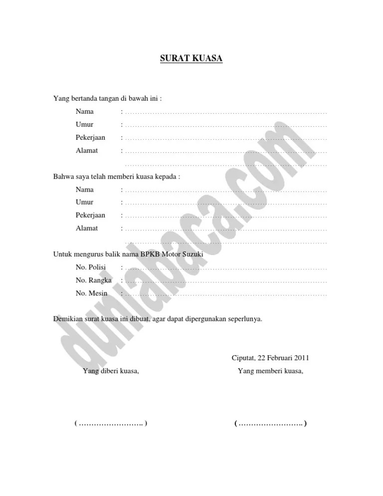 Surat Kuasa Kepemilikan Kendaraan Bermotor - 5 Contoh Surat Kuasa Pengambilan Bpkb Dan Cara Membuatnya - Surat kuasa bermaterai dan terlampir fotocopy (bila dikuasakan) 3.